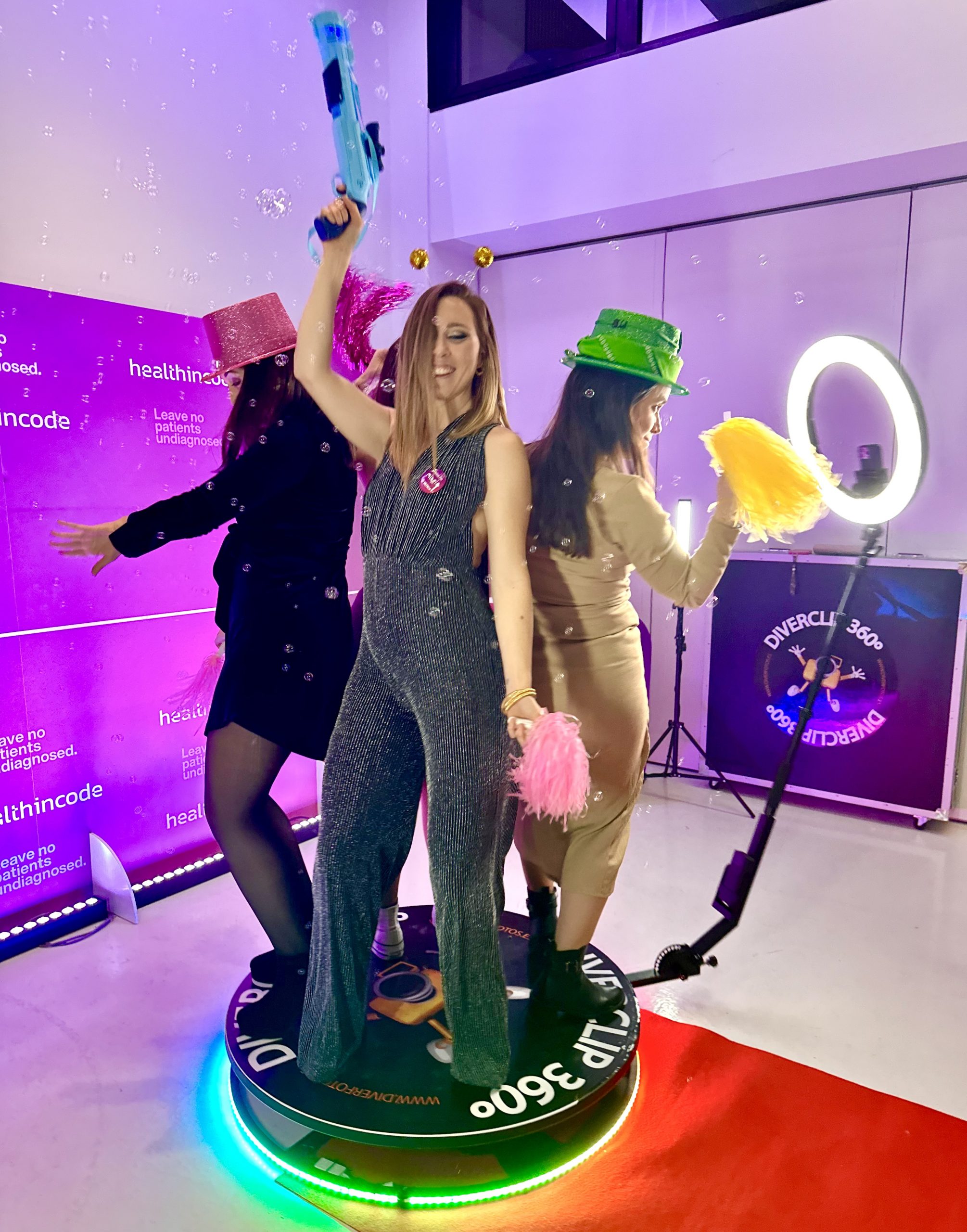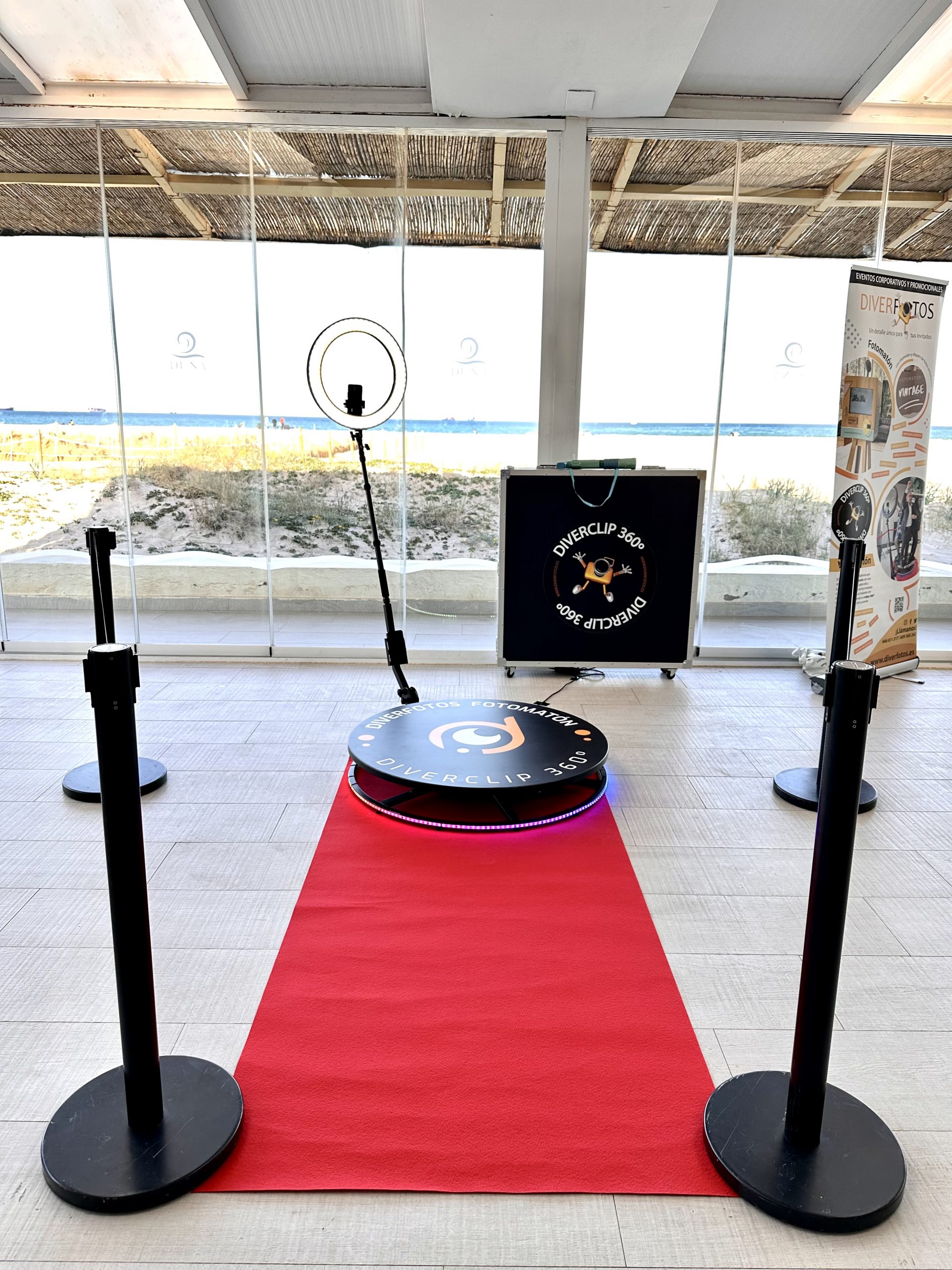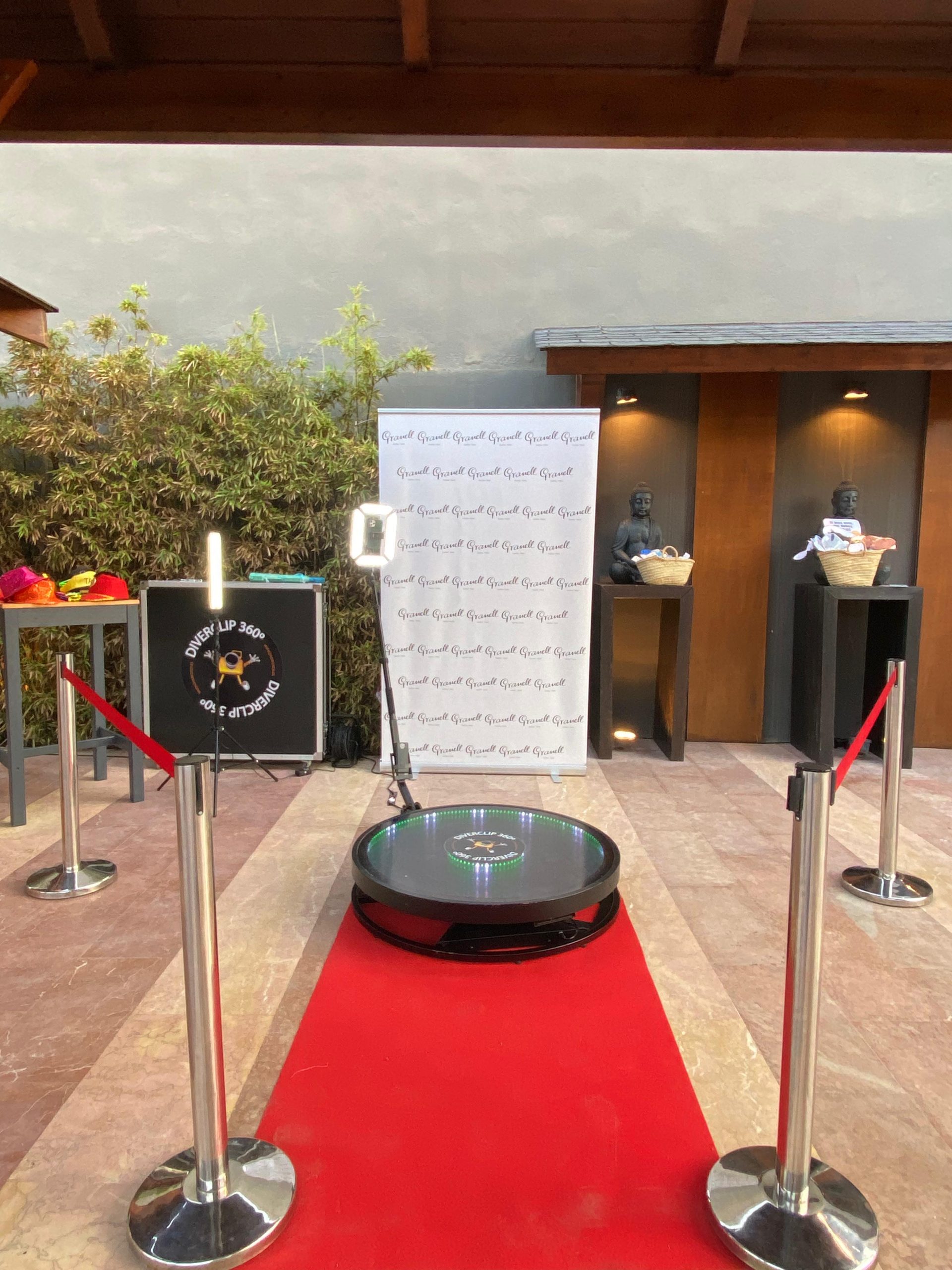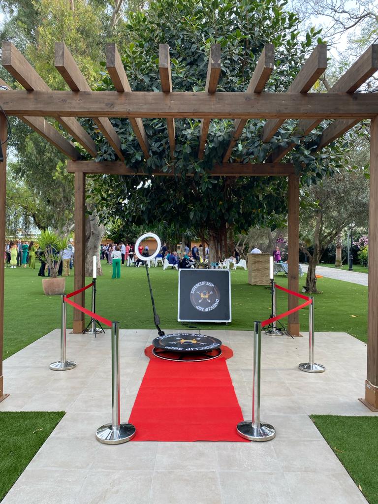 Diverclip 360º es una plataforma que incorpora un brazo giratorio con una cámara reflex que girará sobre ella y captará los movimientos de los invitados desde todos los ángulos al instante con muy buena calidad, creando un video 360º único para los invitados de tu evento.